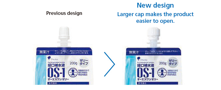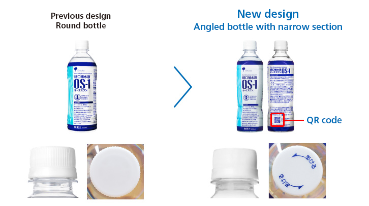 OS-1* and OS-1 Jelly* are produced by Otsuka Pharmaceutical Factory. These products are foods for people with medical conditions. We received input from elderly individuals, customers receiving treatment, those in need of nursing care, and others who reported difficulty opening the cap because of weakened muscles. Based on this input, we redesigned the container to be easier to open. We have also created websites that provide product information in Japanese, English, Chinese, Spanish, and Korea, and we added QR codes to product labels that link to these websites.