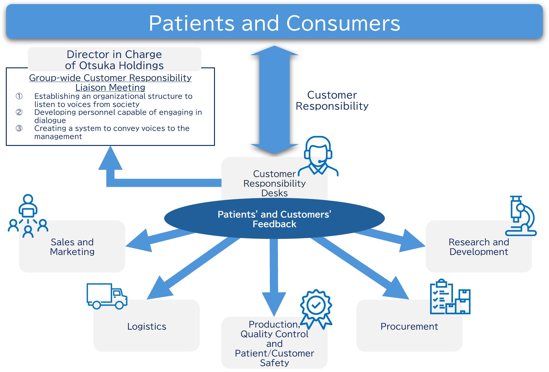 Since 2008, we have held a Group-wide Customer Responsibility Liaison Meeting every year under the supervision of Otsuka Holdings directors. Meetings are attended by representatives of companies in the Pharmaceutical Business, Nutraceutical Business, Consumer Products Business, the daily necessities and e-commerce categories, as well as from other relevant departments. The various companies report on their customer responsibility activities and initiatives for greater consumer orientation, thus fostering our consumer-oriented corporate culture.