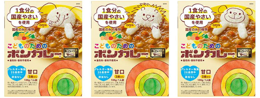 The renewed Bon Curry for Children addresses both these issues by providing more vegetables — in fact, a full serving of Japan-grown vegetables — and coming free of 28 different allergens (all of the food allergens subject to indication under Japan’s Food Labeling Act), eliminating raw materials that contain them in production.